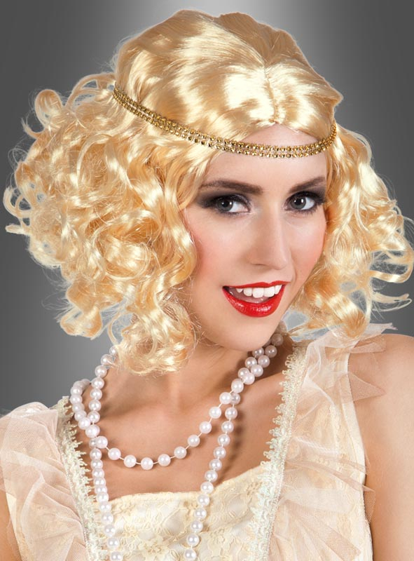 Die lockige Kurzhaarperücke wird mit einem separaten, nicht dehnbaren, funkelndem Stirnband geliefert. Bei der blonden Perücke ist das Stirnband golden, bei der schwarzen Perücke ist es silbern. Ein schöner Kopfschmuck, er ideal zu Kostümen im 20er Jahre Style passt. Durch den vorhandenen Gummizug ist eine individuelle Anpassung möglch.