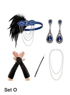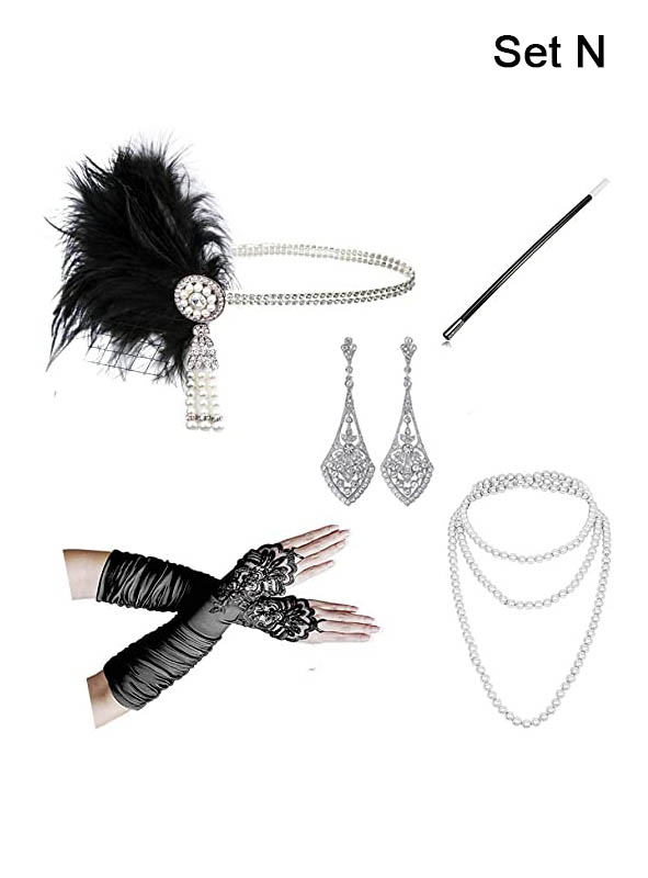 Für Ihr Charleston Kleid bekommen Sie hier ein 20er Jahre Zubehör Set mit silbernen Akzenten. Ohne diese zauberhaften Accessoires wäre Ihr Kostüm nicht vollständig.