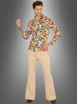 Für Damen haben wir die passende Bluse und auch eine Schlaghose mit Retrokreisen im Sortiment. So können Sie als Paar gemeinsam im coolen Retro Outfit zur Party gehen.