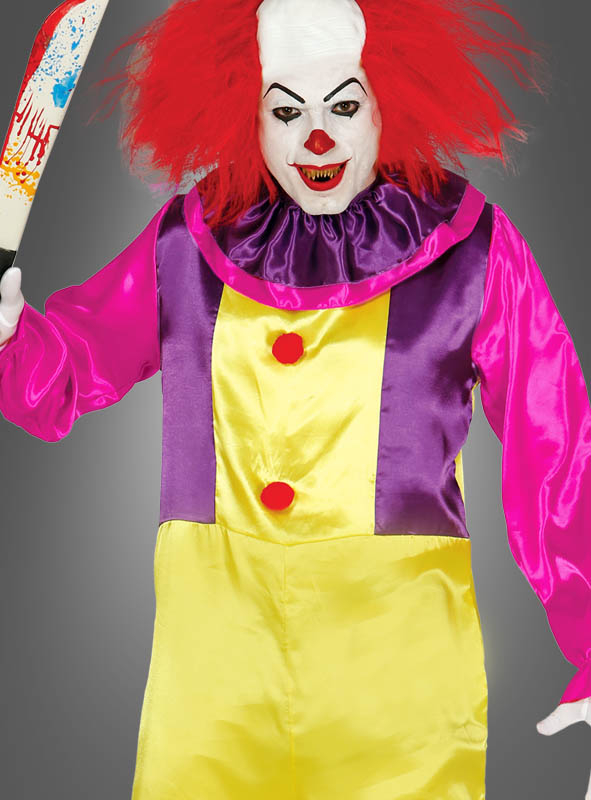 Angelehnt an den Horrorfilm ES von Stephen King, ist der Clown Pennywise alles andere als ein Spaßmacher, sondern verbreitet das nackte Entsetzen in der Stadt. An Halloween oder auf Mottopartys können Sie sich mit dem bunten Clown Herrenkostüm in ein Wesen der Finsternis verwandeln.