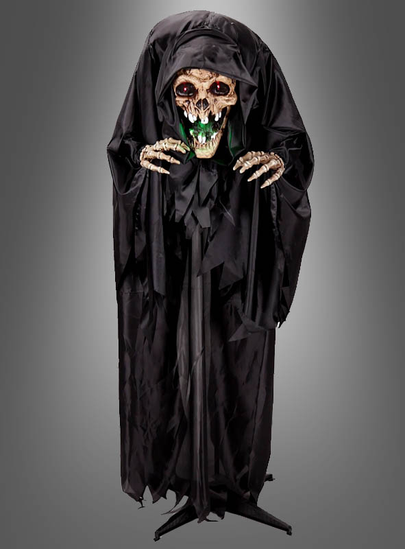 Eine buckeliger Reaper Skelett Figur in Lebensgröße wird Ihre Halloween Dekoration bei der nächsten Party nicht nur bereichern. Dieses animierte, freistehende Skelett wird das absolute Highlight sein!