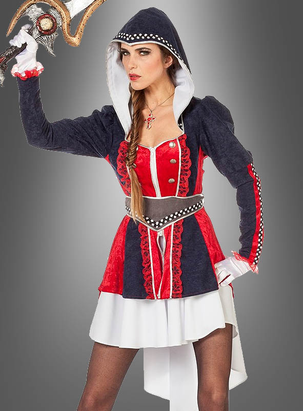 Das Highlight dieses 3-teiligen Fantasy Kriegerin Damen Kostüms ist eine aufwändig gestaltete Jacke mit Kapuze. Schlichtes Blau bildet einen attraktiven Kontrast zu samtroten Elementen der Jacke, ergänzt mit roter Spitze. Silberfarbene Bordüren und 6 silberne Zierknöpfe vervollständigen den edlen Eindruck.