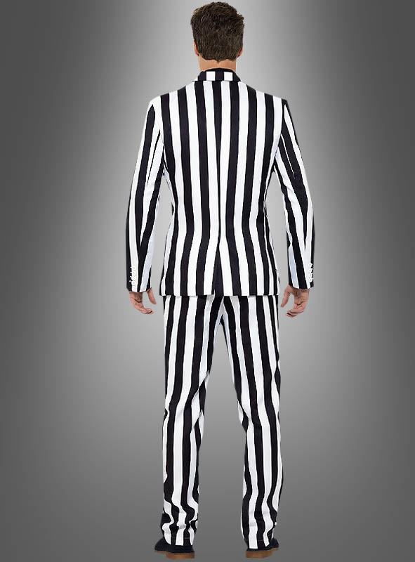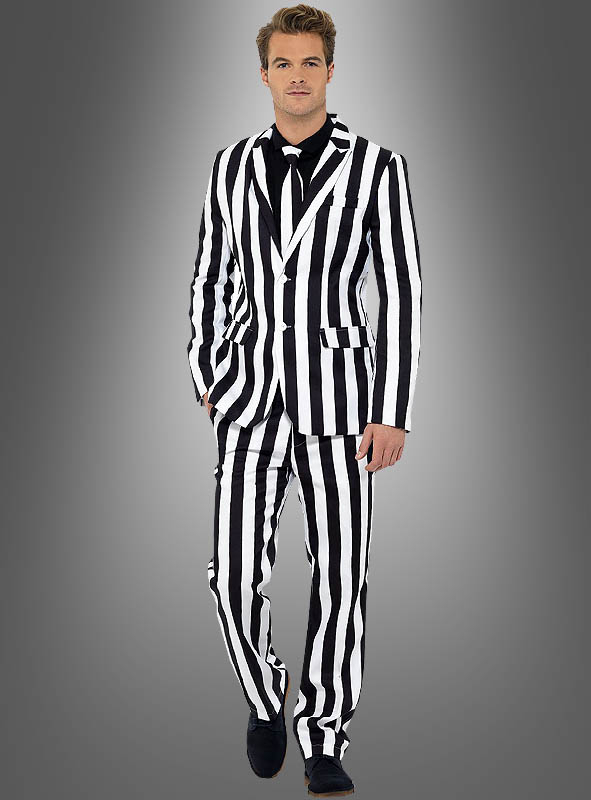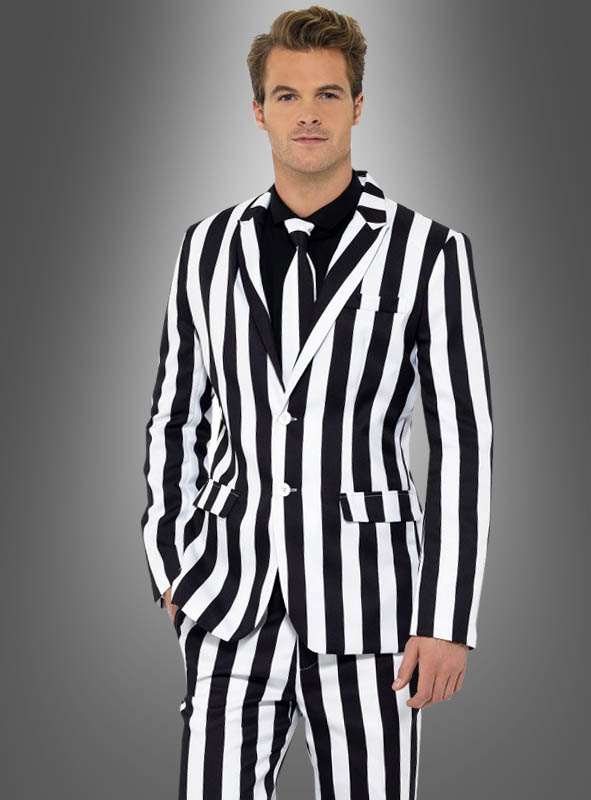 Egal ob Sie als Gangsterboss der Mafia oder als Sträfling unterwegs sein wollen: Mit dem passenden Zubehör ist der gestreifte Anzug in schwarz-weiß vielseitig einsetzbar. Oder Sie werden zum bekannten Geist Beetlejuice, der auch immer im Streifenanzug unterwegs ist.