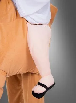 Das lustige Kamel besteht aus einem angenehm leichten Kamel mit befestigten Vorderbeinen. Am Körper sind kurze Stoffbeine mit Sandalen angenäht, damit es aussieht, als wären es Ihre eigenen. Die Hinterbeine des Kamels ziehen Sie bequem als Hose an, die durch Gummibund in der Größe sehr flexibel ist. Die Träger am Kamelkostüm sind verstellbar und somit für jede Körpergröße geeignet. Sie werden bequem über der Schulter getragen, auch überkreuz möglich, um ein verrutschen auszuschließen.