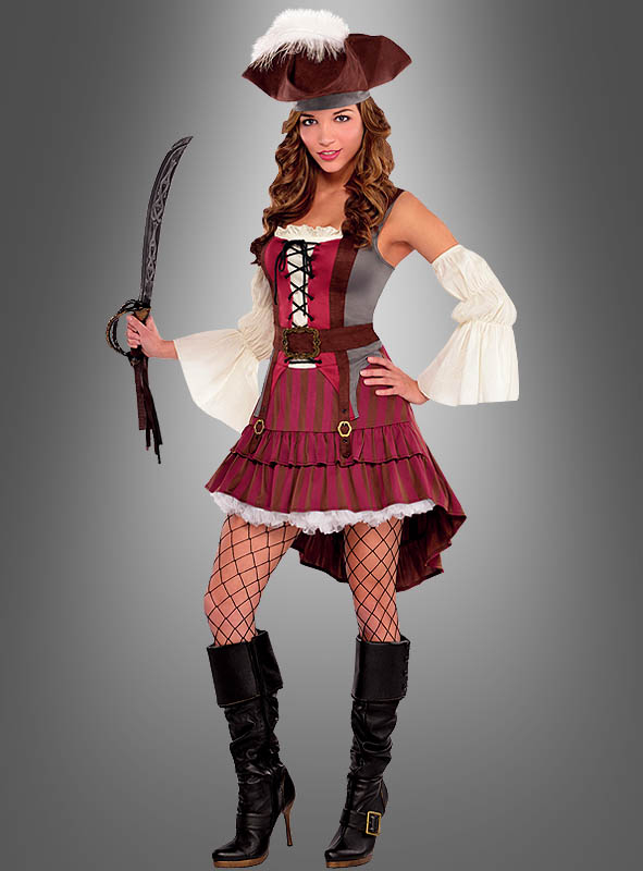 Stürzen Sie sich ins Abenteuer mit unserem Piratinnen Kostüm für Damen. Ganz im Stile der berühmten Fluch der Karibik Filme entern Sie als Piratin Elisabeth Swann die nächste Motto-Party oder machen an Fasching oder Halloween eine verwegen gute Figur.