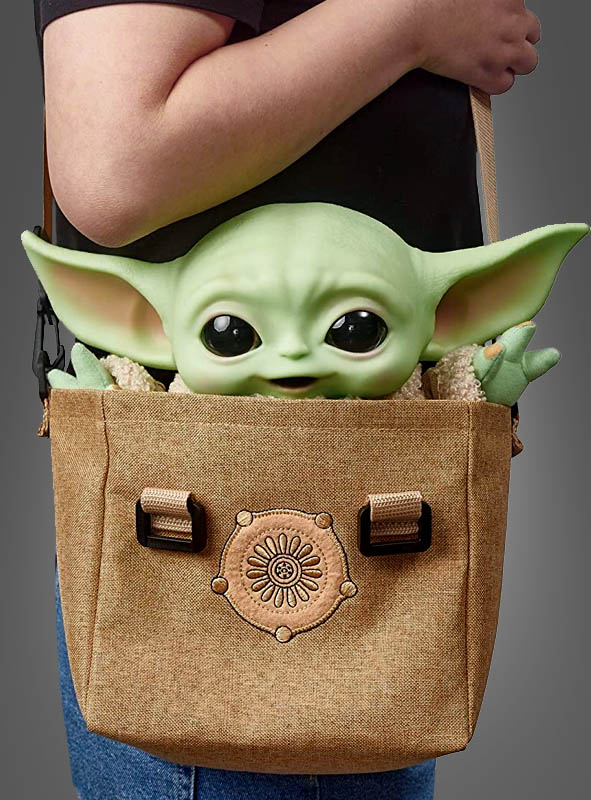 Die Plüschfigur „Das Kind“ in der Umhängetasche ist das perfekte Cosplay für alle Mandalorian Fans. Mit Grogu an der Seite wird das Kostüm erst so richtig perfekt.