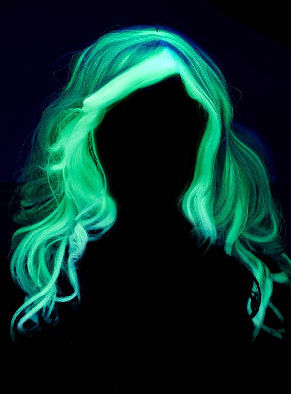 Legen Sie die Perücke vor Ihrem großen Auftritt unter eine starke Lichtquelle, damit sich der Glow-in-the-Dark Effekt aufladen kann.