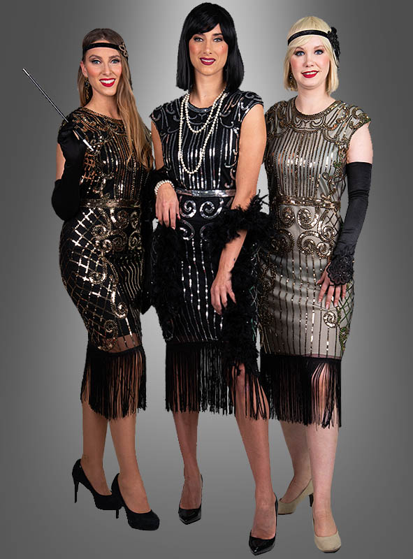 Die 20er Jahre Kleider mit Pailetten werden Sie faszinieren. Wenn Sie Ihre Mottoparty im Stil der 20er Jahre planen und auf der Suche nach der Verkleidung in Premiumqualität sind, dann werden Sie in diesem 20er Jahre Look ein richtiger Hingucker sein.