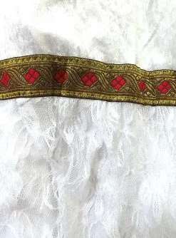 Das weiße Untergewand aus Pannesamt ist mit Goldborte versehen und im unteren Teil mit weißem Spitzenstoff verziert. An dem Umhang aus rotem Pannesamt befindet sich ebenfalls Goldborte und goldene Fransen. Der Umhang hat einen Stehkragen mit goldenem Zierknopf und ist innen mit einem Taftstoff gefüttert. Ein rote Schal und eine weiße Kordel runden das Nikolauskostüm ab. Das wichtigste Accessoire ist jedoch zweifellos die Mitra, die schicke Bischof Mütze. Vielleicht wollen Sie gar nicht in den Alltag zurückkehren?