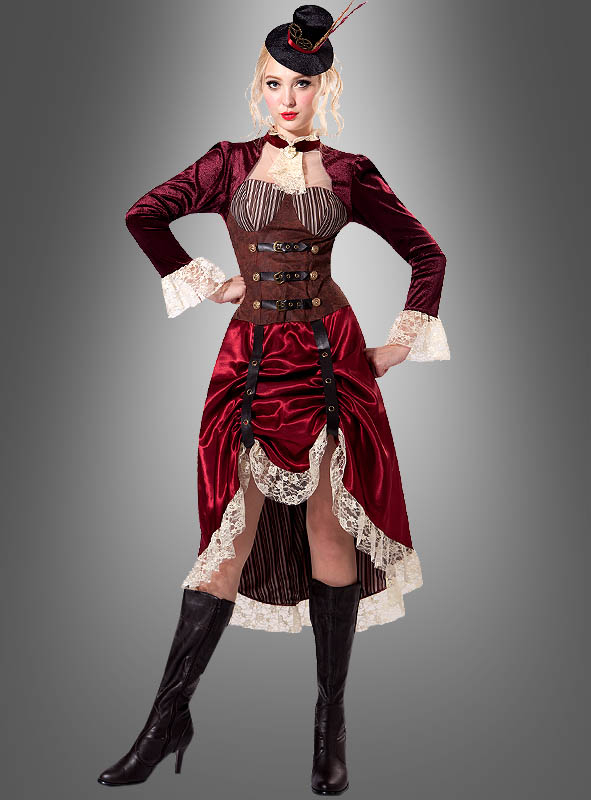 Steampunk Kleid lang mit Hut