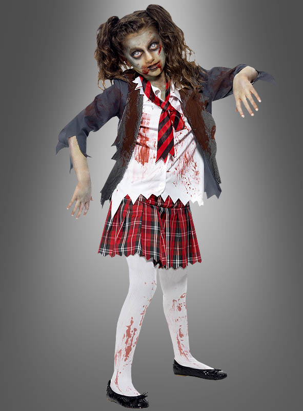 Das Zombie Schulmädchen macht Jagd auf noch lebende Klassenkameraden, da keiner mit ihm spielen möchte. Woran das wohl liegt? Cooles Outfit für alle Mädchen, die an Halloween ein wenig gruseliger unterwegs sein wollen. Passend für die Eltern haben wir Zombie Schuljungen und -mädchen für Erwachsene.