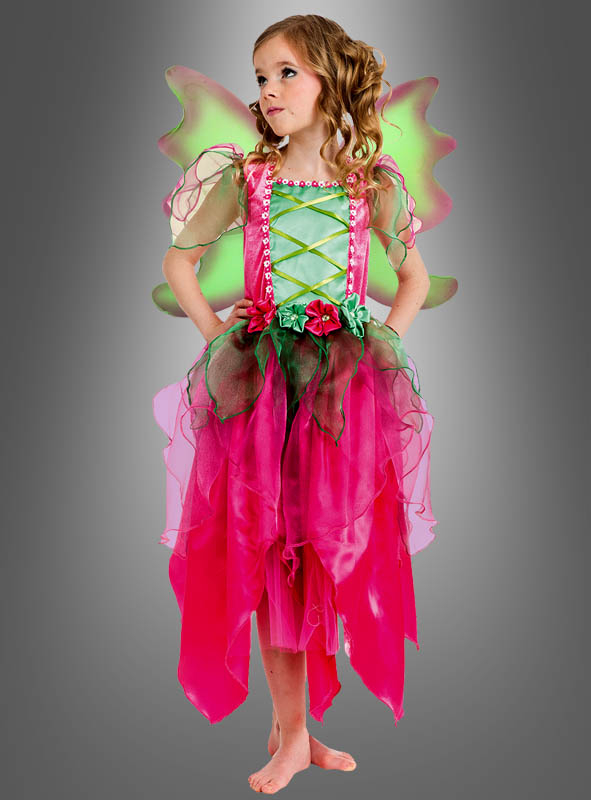 Zauberhaft und wunderschön ist dieses zarte Feenkostüm für Mädchen. Die kleine Blütenelfe fliegt von Rose zu Rose und trinkt den goldenen Nektar der Blumen.